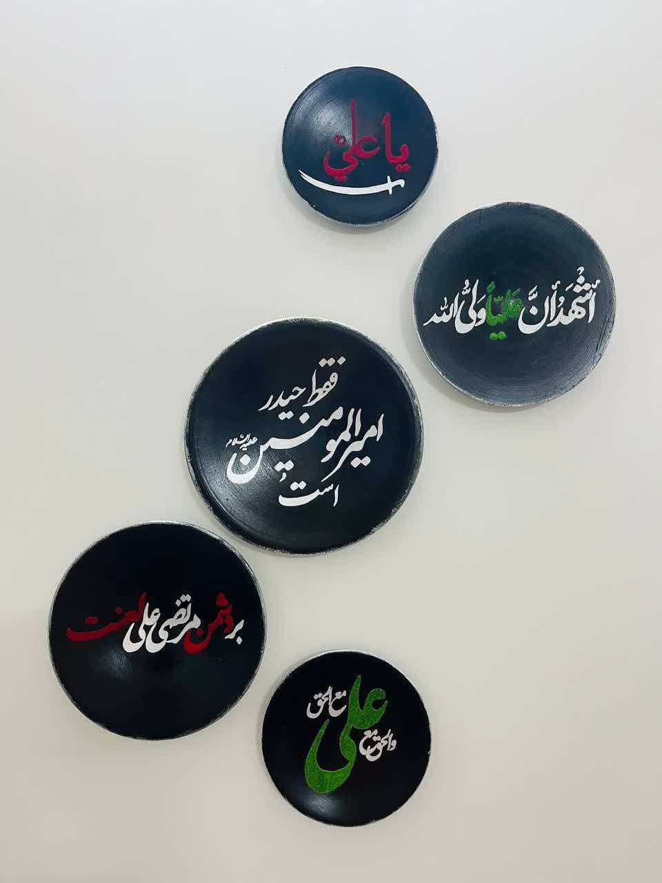 متون خوشنویسیشده با محوریت نامهای مقدس، روحی معنوی و وزین به فضا میبخشند و حضورشان یادآور آرامش، حمایت و نورانیت امیرالمؤمنین(ع) است.